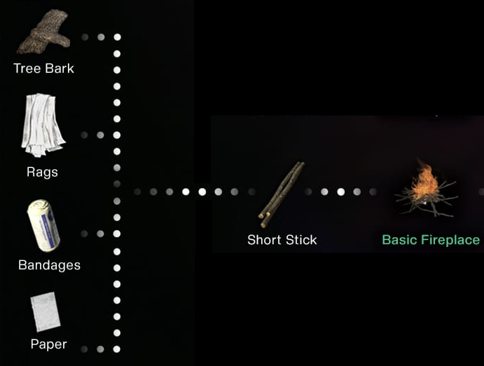 Tree Bark, Rags, Bandages, Papers + Short Stick = Basic Fireplace