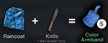 Raincoat + Knife (Any Sharp Tool) = 5x Color Armband