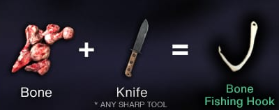 Kość + Nóż (dowolne ostre narzędzie) = Haczyk wędkarski z kości
