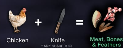 Kurczak + Nóż (dowolne ostre narzędzie) = Mięso, kości i pióra