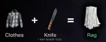 Crafting Rags Rags are a basic piece of equipment in DayZ. They can be used to stop bleeding, as a gag, or as a crafting material. Clothes + Knife (Any Sharp Tool) = Rag
