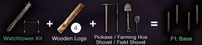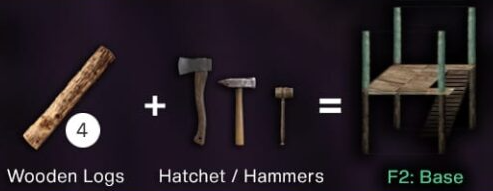 4x Wooden Log + Hatchet / Hammers = F2: Base