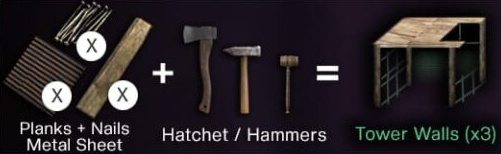 10x Planks + 10x Nails + 10x Metal Sheet +
