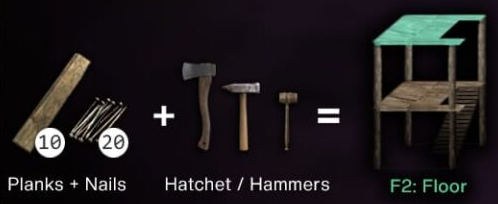 1-x Planks + Hatchet / Hammers = F2: Floor