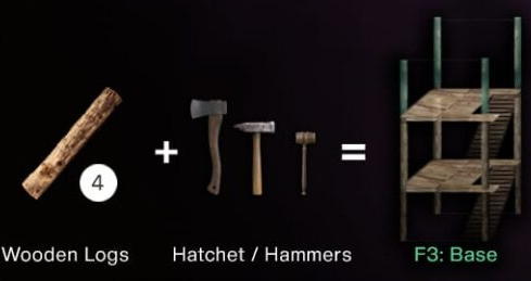 4x Wooden Logs + Hatchet / Hammers = F3: Base