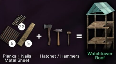 5x Planks + 20x Nails + 6x Metal Sheet +