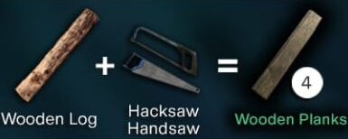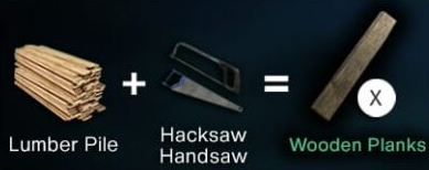 Crafting Wooden Planks Wooden Log + Hacksaw / Handsaw = 4x Wooden Planks Lumber Pile + Hacksaw / Handsaw = 10x Wooden Planks